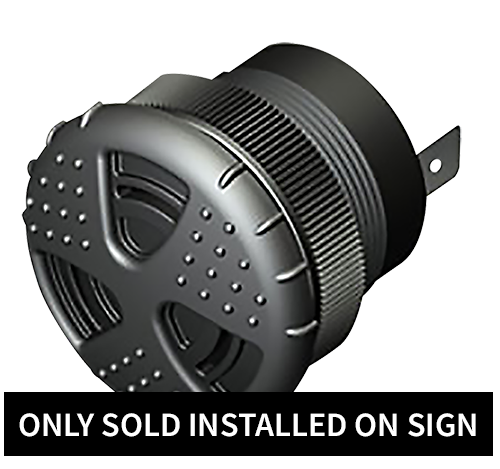 Water Proof solid state shutter type buzzer. Sound pressure is 95dB at 2 feet. Audible alarm is factory installed. Standard installation location is 3" from bottom right-side of sign cabinet, centered on frame; unless otherwise requested. Cannot be purchased separately, factory installed only.