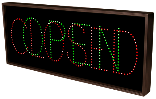 This TCL Series OPEN | CLOSED (120-277VAC) outdoor, blank-out sign is designed with super bright LEDs and a contrasting face; we guarantee it's readable in direct sunlight. The sign message is formed by visible LEDs on a black sign face and is designed to illuminate the message(s) when turned on and blank out or extinguish the message when off.