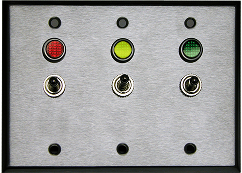 5618 (TCL217RAG-226H/120-277VAC) Indicator Dots, Triple with Hoods, Vertical, 4 in dia, Red - Amber - Green (120-277 VAC)
