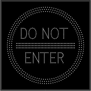 This STR Series Do Not Enter Symbol outdoor, highway-grade blank-out sign is designed with a NEMA 3R cabinet, super bright LEDs and a contrasting face; guaranteed readable in direct sunlight. The sign message is formed by strategically placed visible LEDs on a black sign face and is designed to illuminate the message or messages when turned on and blank-out or extinguish the message when off.