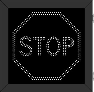 This DOT Series STOP w/ Octogon sign is a direct-view LED design that illuminates when activated and blanks out when deactivated. Outside cabinet dimensions are 29.000" x 29.000" x 6.500".