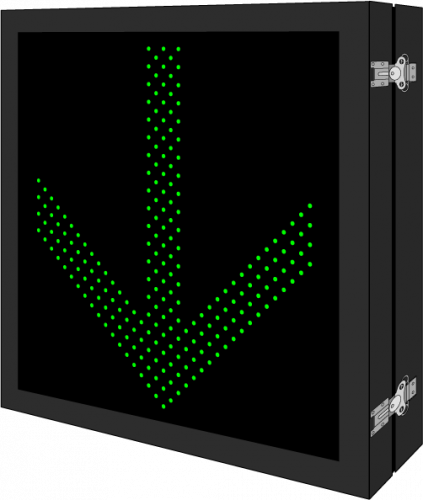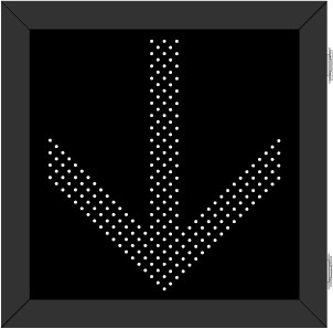 This DOT Series Down Arrow sign is a direct-view LED design that illuminates when activated and blanks out when deactivated. Outside cabinet dimensions are 29.000" x 29.000" x 6.500".