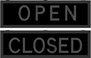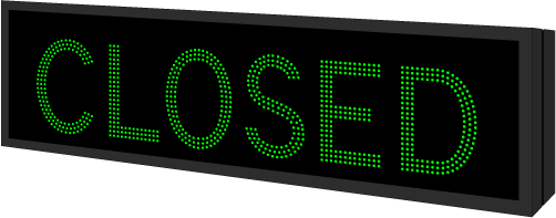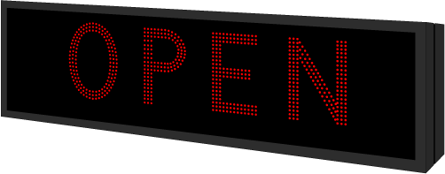 This DOT Series, OPEN | CLOSED sign is a direct-view LED design that illuminates when activated and blanks out when deactivated. Outside cabinet dimensions are 23.000" x 75.000" x 6.500".