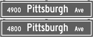 This 4900 Pittsburgh Ave | 4800 Pittsburgh Ave SNS series sign is internally illuminated and features printed graphics on a translucent, prismatic retroreflective vinyl that is applied on the second surface of a UV-resistant, 0.125-inch high-impact acrylic face panel. The cabinet is constructed of lightweight, extruded aluminum alloy with a black finish, hinged doors, and lockable latches. NEMA3X/IP55. Voltage range is 100-277VAC.