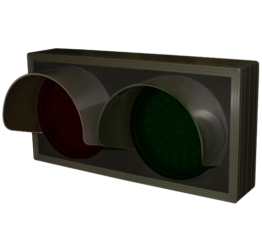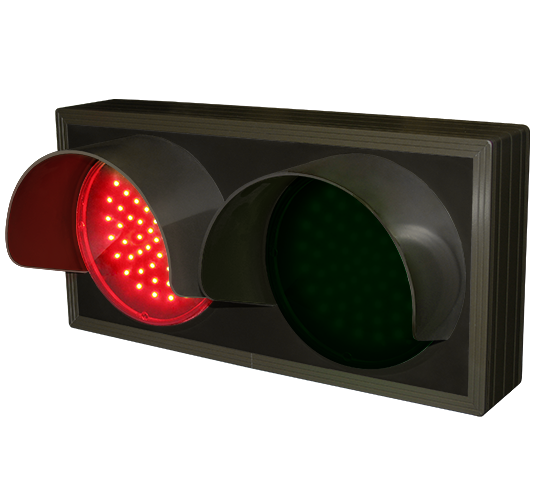 This TCL Series Indicator Dots, Double with Hoods, Horizontal, 4 in dia, Red - Green outdoor, blank-out sign is designed with super bright LEDs and a contrasting face; we guarantee it's readable in direct sunlight. The sign message is formed by visible LEDs on a black sign face and is designed to illuminate the message(s) when turned on and blank out or extinguish the message when off.