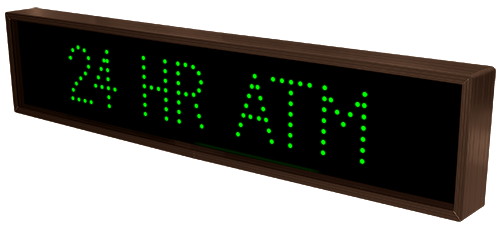 This TCL Series 24 HR ATM outdoor, blank-out sign is designed with super bright LEDs and a contrasting face; we guarantee it's readable in direct sunlight. The sign message is formed by visible LEDs on a black sign face and is designed to illuminate the message(s) when turned on and blank out or extinguish the message when off.