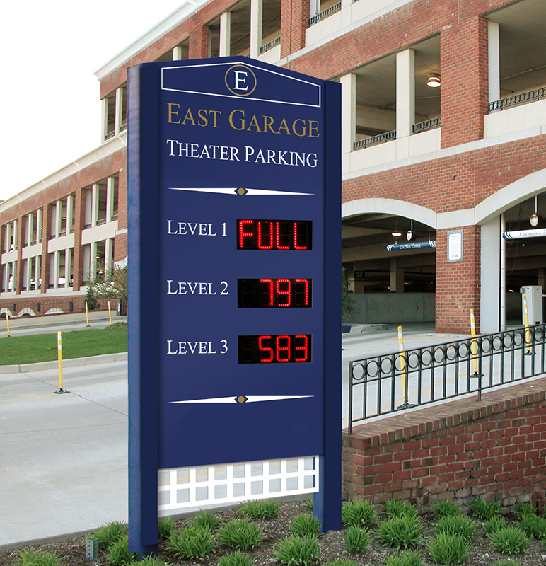 Custom SignsCustom designed Space Available, Level status or End of Aisle signs with LED 7-segment boards for displaying counts. Signage is sized to display counts for a single level or entire garage. More |