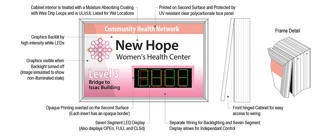 Our SAi Series is a seamless integration of our LED backlit signs and count displays. High-impact acrylic face(s) with an anti-glare coating allows for full graphic customization while increasing durability.